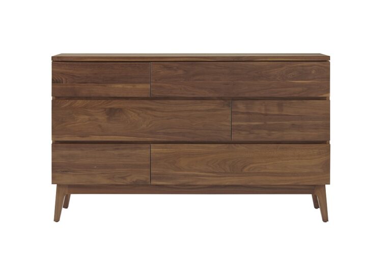 Elevate your bedroom storage with the Serra Walnut 6 Drawer Dresser. This dresser features a contemporary design crafted from solid walnut wood, offering both durability and style.