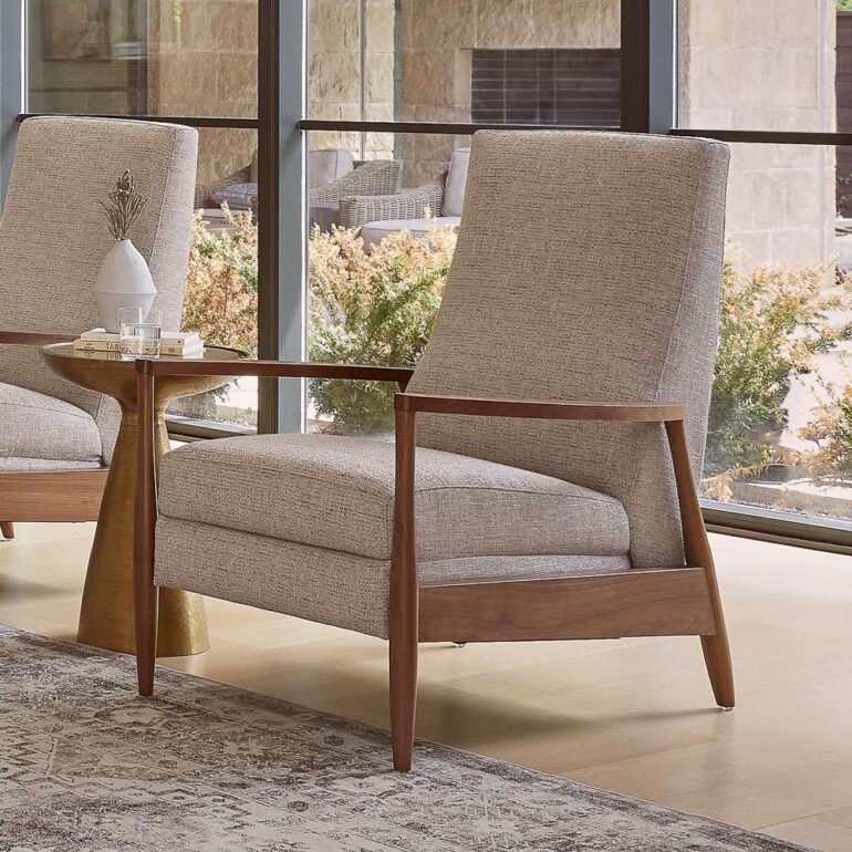Featuring unique Natural Walnut or Gray Ash arms that encase this unlikely recliner, the slightly curved back adds to its high-design appeal, making it the perfect recliner for those who’ve said they’d never own one—a gentle reminder to “never say never.”
