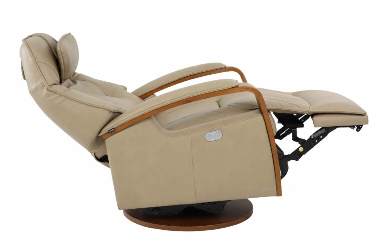 The Helsinki Power Swing Relaxer is an ergonomic recliner from Fjords by Hjellegjerde that is a stylish addition to any living room. Crafted with full-grain leather, this recliner has infinite adjustability for total comfort and relaxation and a 170-degree swivel. Whether you are watching t.v., reading a book, or surfing the net, prepare for relaxation on a whole new level once the Helsinki Power Swing Relaxer is sitting in your living room.