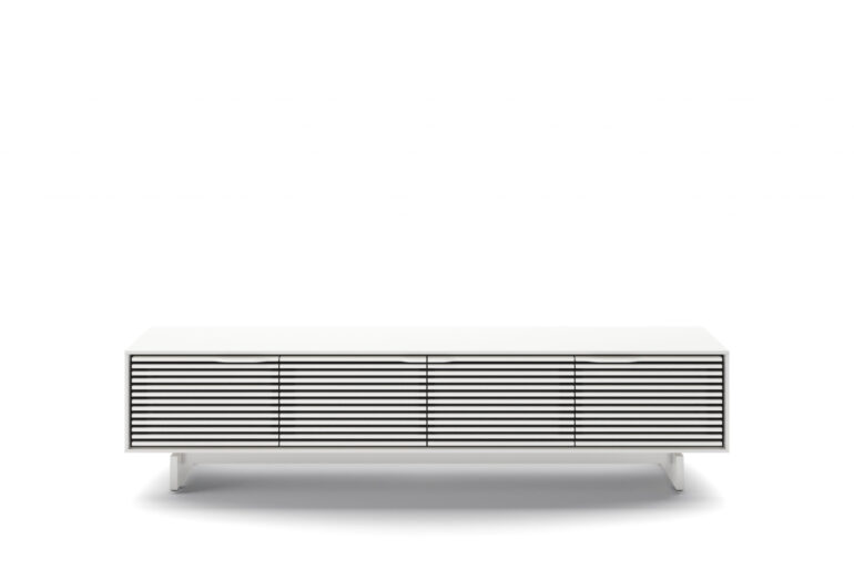 The Align 7473 is a full-featured and low-profile modern TV stand and credenza design that pairs remote and audio-friendly louvered doors with your choice of two available base styles, media or console.