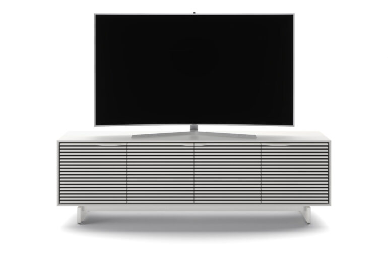 The Align 7479 TV stand features an array of useful and innovative features that make it a must-own media console. Perfectly sized for home theater systems with a large television, this modern TV stand packs a ton of innovative features, including a full-width soundbar shelf, remote-friendly and acoustically-transparent louvered doors, built-in cable management, flow-through ventilation, adjustable shelves, hidden wheels, and rear access panels.