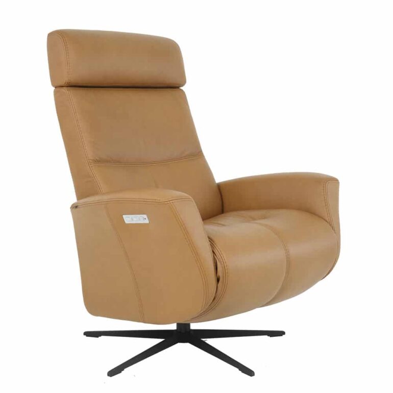 The Magnus Dual Motor Power Recliner from Fjords is a contemporary design that offers unrivaled seating comfort. This dual motorized recliner provides continuous support for your legs and back, with independent control of the footrest and back position, complemented by a swivel base. Available in all of Fjords’ leathers, the Magnus features a slim, classic modern look with a manual release angle and a height-adjustable headrest. The chair is available in two sizes: medium and large.