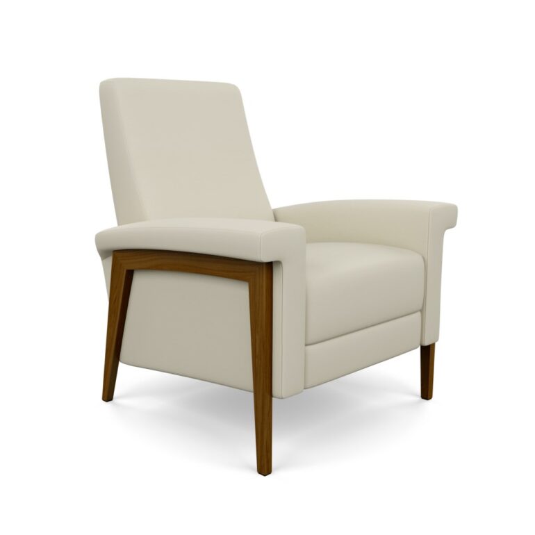 The Quinton is a striking showstopper, characterized by its dramatic ledge-like arms and uniquely angled wooden legs beneath. This piece expertly blends style and comfort, offering an unexpected recliner function that engages with a simple push-back motion. Opt for stunning Natural Walnut or Gray Ash legs to tailor the appearance to your space.