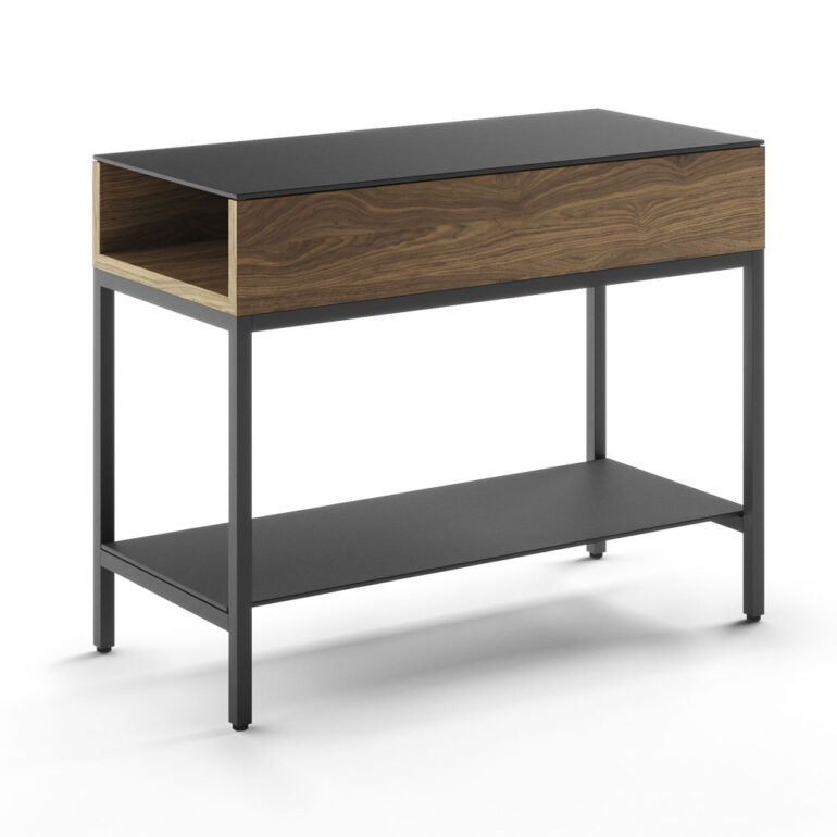 The slender yet highly versatile Reveal 1196 end table coordinates perfectly with various seating and living room configurations. Available in three finishes, the table’s tempered glass top and lower shelf are ideal for sofa-side display, while a unique divided compartment provides storage and concealed cable management. Partner with the Reveal 1192 lift-top coffee table to create a beautifully functional table grouping for work and relaxation.