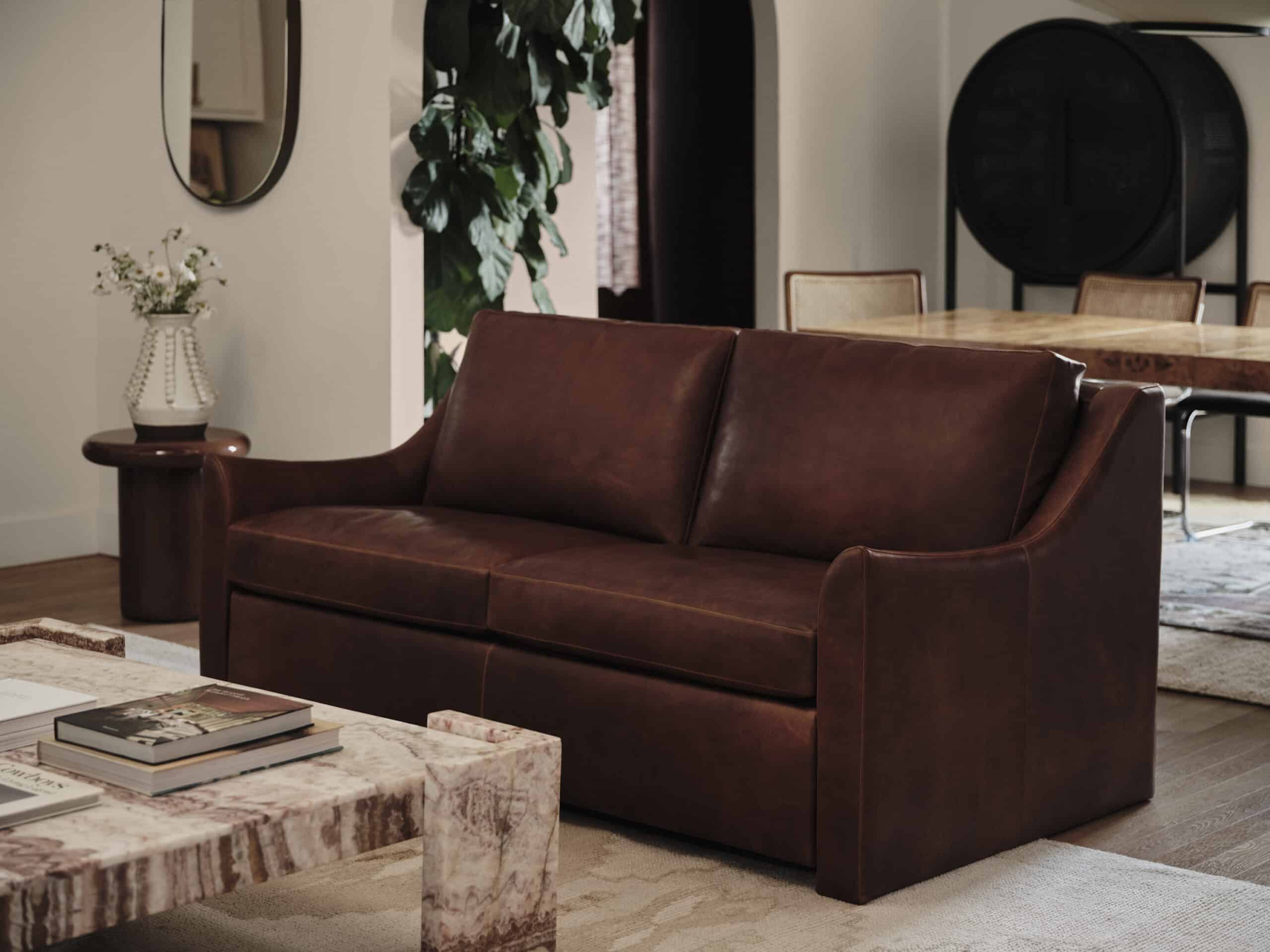 The Today Sleeper by American Leather is the perfect blend of style, comfort, and innovation. Its signature slope arms and stylishly simple silhouette add elegance to any space, while the two-panel fold-out setup ensures an effortless day-to-night transition.