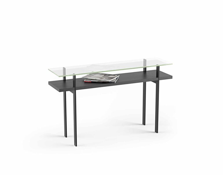 The Terrace Console Table by BDI is a balanced design that supports a floating glass top over a lower shelf, creating an elegant and functional solution for lighting, storage, and display. Combining a tempered glass top, open display storage, and thick wood panels on durable steel supports, this console pairs perfectly with the rest of the Terrace collection. The sleek glass surface enhances the table’s modern aesthetic while offering a clear view of the lower shelf, making it an ideal addition to any living space. The Terrace Console is a versatile piece that partners exceptionally well with BDI media furniture, coffee tables, and end tables, creating a cohesive and sophisticated look.