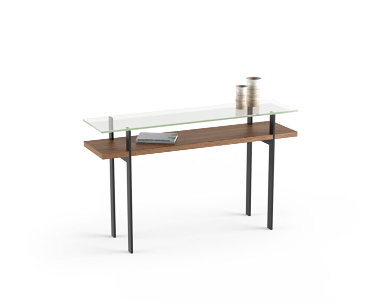 The Terrace Console Table by BDI is a balanced design that supports a floating glass top over a lower shelf, creating an elegant and functional solution for lighting, storage, and display. Combining a tempered glass top, open display storage, and thick wood panels on durable steel supports, this console pairs perfectly with the rest of the Terrace collection. The sleek glass surface enhances the table’s modern aesthetic while offering a clear view of the lower shelf, making it an ideal addition to any living space. The Terrace Console is a versatile piece that partners exceptionally well with BDI media furniture, coffee tables, and end tables, creating a cohesive and sophisticated look.