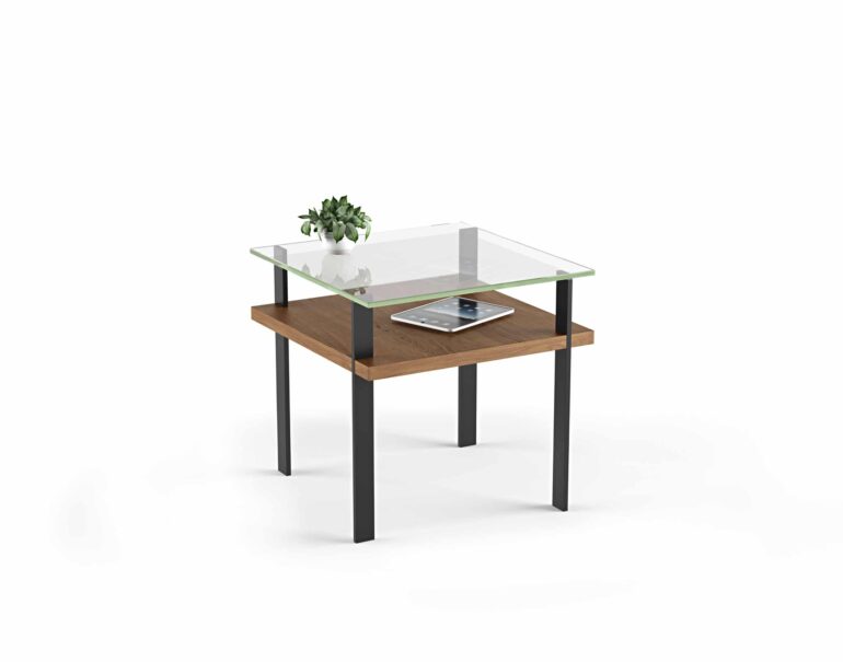 Architectural in feel, the Terrace End Table by BDI complements and pairs perfectly with the rest of the Terrace collection. Combining a tempered glass top, open display storage, and thick wood panels supported by a sturdy steel frame, this end table is both functional and visually appealing. Its clean lines and meticulous design showcase a modern aesthetic that fits beautifully into a variety of living spaces. The glass surface offers a clear view of the lower shelf, making it an ideal spot for displaying your favorite decor items. Part of the Terrace collection, the end table is available alongside two coffee table sizes and a matching console, creating a cohesive and refined look in any room.
