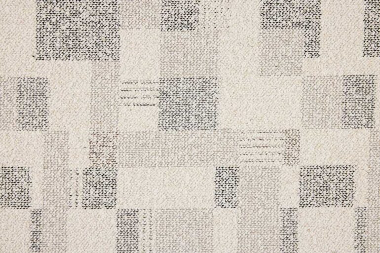 Woven knotted boucle texture with geometric pattern and muted color, great chair and pillow pattern. 30% Acrylic, 47% Polyester. 11% Viscose, 12% Linen