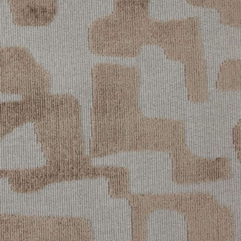 Vibe is highly regarded for its opulent appearance and can add a touch of elegance to various design projects. This lustrous cut velvet features a warm tonal taupe with a grey woven background. 76% Viscose, 24% Polyester